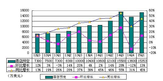 藝龍宣布的2015年Q1季度財報顯示,總營收為人民幣2.258億元人民幣,其中藝龍第一季度來自酒店預訂業(yè)務的營收在總營收中所占比例為84%,高于去年同期的78%。
