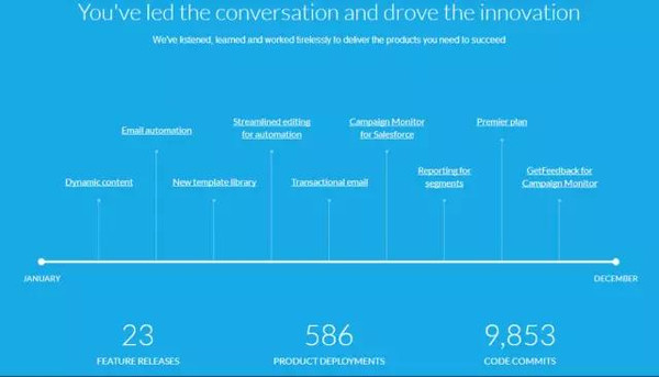 年年月月花相似,但靈感迸發(fā)的設(shè)計師們可不會拘泥于前人之作。相同的祝福,更高的愿景與期許,更精湛的設(shè)計巧思,每年的新年網(wǎng)站,無疑都是一場視覺與創(chuàng)意的盛宴。 飛向新出發(fā)點pernod-ricard 網(wǎng)站地址:http://new-year.pernod-ricard.com/ 新的一年永遠是揚帆起航的日子,這對于Pernod-Ricard這一世界級酒類出產(chǎn)商也一樣,正如設(shè)計師想表達的那樣——去飛吧,穿過宏偉的云層,來到但愿的神殿。 首頁載入完畢后,設(shè)計師就讓用戶穿越云層來到第二“天”。首頁氣魄恢宏,全動態(tài)頁面向用戶展示了一個洶涌澎湃的天空世界,也將企業(yè)的格式和愿望顯示的淋漓盡致。而導(dǎo)航頁頁面之上仿佛讓用戶早已登上了云層的頂端,已經(jīng)“一覽眾云小”;一串祝福案牘在畫面正中,先其他元素一步表達主題。導(dǎo)航欄做成了8個菱形塊,每一個幾何體背后都是一段小視頻,展示著企業(yè)的瞻望之意。 但設(shè)計師不會只知足云層殊效,于是他們在每一個導(dǎo)航下面,設(shè)計師將與流動、發(fā)生了什么事糅合在一起,而且都是以創(chuàng)意的“飛行模式”展開,充分描繪了趣味性,也讓消費者感慨感染到這家公司的好與壞。 寫下你的新年祝福,我為你展現(xiàn) evs新年網(wǎng)站 網(wǎng)站地址:http://xmas.evs.com/summary 作為一個迎新站,EVS網(wǎng)站的設(shè)計夸大互動這一層面——網(wǎng)站以make anew-year-message為主題,通過自己公司員工進行字母演繹,按照用戶所設(shè)定的序列排列出來。而這些都可以由用戶自行“DIY”。第一條“togetherwe’re making extrordinary”則是公司自行設(shè)計的迎新Slogan,當用戶進入網(wǎng)頁時就會自動播放,這不但引發(fā)了用戶創(chuàng)造屬于自己內(nèi)容的沖動,而且還傳遞了自身品牌。 作為一個廣告服務(wù)公司的網(wǎng)站,EVS新年網(wǎng)站天然在設(shè)計之上也可圈可點,大面積純色排版、富有沖擊力的色調(diào)展示,展示出一個網(wǎng)站不凡的表現(xiàn)空間。而手寫體的文字、單屏頁面的板式也同時將網(wǎng)站變成了一個顯現(xiàn)企業(yè)風(fēng)格的地方。 再見,我們的2015 campaignmonitor新年網(wǎng)站 網(wǎng)站地址:https://www.campaignmonitor.com/2015/ 當所有迎新網(wǎng)站大紅大綠之時,源自Saleforce的Campaignmonitor網(wǎng)站卻冷靜的打出自己的主題——“review”,獨具創(chuàng)意地用數(shù)據(jù)進行展示,為其所服務(wù)過的企業(yè)做了一個宏觀服務(wù)講演。讓“圈里人”人深刻的意識到自己所在的2015年畢竟發(fā)生了什么,也同時鞏固了企業(yè)的“江湖地位”。 也許源自自身在數(shù)據(jù)運營層面極深的造詣,campaignmonitor的設(shè)計師將網(wǎng)站設(shè)計出了一個數(shù)據(jù)講演的味道,長頁面設(shè)計讓每一頁用不同的顏色以及各種圖表展示出多種數(shù)據(jù)。而且所有頁面都有一個相互聯(lián)系關(guān)系的主題,從2015年的方方面面展示著企業(yè)所服務(wù)的客戶與整個營銷“大世界”絲絲縷縷的關(guān)系,讓每個客戶在讀到頁面之時都能得到深深的觸動。 整個網(wǎng)站已經(jīng)被設(shè)計師幾乎完全“數(shù)據(jù)化”,像是一張張商務(wù)幻燈片。但是網(wǎng)站設(shè)計卻涓滴沒有讓人有閱覽時的不適感,反而感到每一頁被銜接的恰到好處,而這恰是設(shè)計師對于網(wǎng)站元素靈活掌握的體現(xiàn)之處——哪幾頁用數(shù)字,哪幾頁用圖片,都是建立在設(shè)計師節(jié)奏把控之上。 海闊天空 stellar.aero2016年新航線預(yù)報 網(wǎng)站地址:https://www.stellar.aero/ 新的開端意味著無窮潛力與可能,也象征著未知的機遇與挑戰(zhàn),這句話對于Stellar航空公司來說不能更加貼切,向天空挑戰(zhàn),挖掘更多的可能無疑成為了他們新一年的目標!而這種愿望也被設(shè)計語言重新描繪,展現(xiàn)在了Stellar官網(wǎng)上,高遠遼闊的天空,旖旎壯麗的景觀,以及交相照映的“飛機與天空”的和諧友好,為來年譜寫了一章漂亮的序言。 網(wǎng)站首頁采用長頁面的設(shè)計形式,利用通屏大背景與文字排版組合,配合殊效,奏響了視覺上華麗的篇章。本站通過表達“飛機”與“天空”的關(guān)系,對實力的塑造交上了滿足的謎底。首頁對殊效的運用,不管是視頻的運用,仍是流線、幾何圖形的運用,都配合行業(yè)特點,極為流暢天然,一氣呵成。 而在內(nèi)頁的設(shè)計上,本站更多采用的是對稱設(shè)計的形式,遵循對稱的規(guī)則,對圖片和文字進行排版,工整有序,簡潔天然。本站較為注重留白的運用,不管是圖片比例,仍是頁面設(shè)計,都留給了用戶留下了充分想象的空間。 “無聊網(wǎng)站”第一彈——讓你的新年祝福升空吧 網(wǎng)站地址:http://www.activation-nodeplus.com/archive/cny2015/ activation-nodeplus.com是基于“新年主題”衍生出來的一個創(chuàng)意策劃——呈現(xiàn)載體為煙花,首頁引導(dǎo)頁過后,關(guān)于創(chuàng)意的使用說明簡潔明了的呈現(xiàn)在屏幕中間。輸入框,輸入任意字符,點擊繼承,玄色背景上,煙花粲然綻放,組成你輸入的字符,再度炸裂成碎片。為增加網(wǎng)站動感,除煙花動效外,玄色星空還伴跟著鼠標隨意扭動,以上內(nèi)容構(gòu)成了本站的主體內(nèi)容。 區(qū)別于普通網(wǎng)站,以創(chuàng)意作為支撐的趣味性網(wǎng)站大多挖掘人道特點