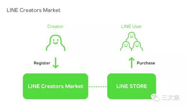 Line的貼圖表情豐碩多樣,除了非;鸬墓俜劫N圖系列中的可妮兔和布朗熊、饅頭人以及詹姆士外,Line也與各大廠(chǎng)商進(jìn)行合作,推出了各種吸粉效果拔群的貼圖。不管是三麗鷗的 Hello Kitty、懶蛋蛋,仍是迪士尼的《瘋狂動(dòng)物城》、《超能陸戰(zhàn)隊(duì)》,亦或是《海賊王》、《銀魂》、《進(jìn)擊的巨人》等熱點(diǎn)的作品,都在 Line 上推出了相應(yīng)的主題貼圖。及時(shí)跟進(jìn)最新的熱點(diǎn)題材,推出對(duì)應(yīng)的主題貼圖。 第二步,表情貼圖商店促進(jìn)UGC Line如斯豐厚的貼圖表情盈利收入,除了自身的更新,還源于Creators Market在UGC上的積極拓展。 Line在2014年4月啟動(dòng)了Creators Market,答應(yīng)用戶(hù)創(chuàng)作、提交和出售自己的原創(chuàng)貼圖,Line 與創(chuàng)作者進(jìn)行五五分成,從而既吸引了眾多用戶(hù)投入到貼圖創(chuàng)作中,又源源不斷的在表情商店提供不同樣式種類(lèi)的貼圖以供用戶(hù)付費(fèi)下載使用。Creators Market給予了用戶(hù)“自由創(chuàng)作的平臺(tái)”,又給用戶(hù)提供了“盈利的可能性”,維持了用戶(hù)的忠誠(chéng)性,給Line提供了新的盈利爆點(diǎn)。