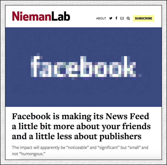 哈佛大學(xué)聞名的尼曼媒體實(shí)驗(yàn)室也發(fā)了評(píng)論,評(píng)論的標(biāo)題看起來(lái)實(shí)話(huà)實(shí)說(shuō),沒(méi)有出人意料之處,但恍惚處理的題圖把Facebook幾個(gè)字折騰得面目全非,顯然有些感情用事。