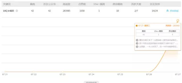 由于被大量公家號轉(zhuǎn)發(fā),《感覺身體被掏空》在騰訊視頻的播放量達(dá)到252萬。另外,固然B站并非首發(fā)平臺,但播放量也高達(dá)137萬,彈幕數(shù)達(dá)3800條,珍藏量也達(dá)到一萬多。 通過新榜的數(shù)據(jù)產(chǎn)品“趨勢查詢”,分別輸入樞紐詞“彩虹合唱團”和“感覺身體被掏空”可以發(fā)現(xiàn),兩個樞紐詞都在昨天達(dá)到了峰值。