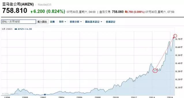 2014 年,貝佐斯被《哈佛貿(mào)易評論》選為 100 位卓越 CEO 第一名,當(dāng)選理由即股東回報(bào)率驚人:在調(diào)整國別后,1996 年到 2014 年的股東回報(bào)率,依然達(dá)到了 152 倍。 而且,這還不是終點(diǎn)。 從 2015 年至今,短短 19 個(gè)月內(nèi),亞馬遜的市值不僅超過了沃爾瑪,還超過了伯克希爾。本周末亞馬遜市值達(dá)到 3657 億美元,比 2015 年第一個(gè)交易日的 1438 億美元高出了 2200 億美元。假如你對這個(gè)數(shù)字沒有概念,可以把它想象成是四個(gè)“百度”。