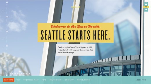 對于網(wǎng)站來說,擁有令人感到驚異的內(nèi)容老長短常樞紐,而利用這些內(nèi)容講故事更是一大上風。2015年的網(wǎng)站設(shè)計很可能聚焦于如作甚用戶講故事。好比,Space Needle(美國西雅圖地標建筑太空針塔)的網(wǎng)站非常漂亮,可以通過使用講故事的方式先容Space Needle的有關(guān)事實,并以動彈翻頁的設(shè)計予以支持。Space Needle也證實2015年的另一種趨勢——互動。網(wǎng)站設(shè)計正添加更多互動和動畫元素,以獨特和有吸引力的方式匡助先容內(nèi)容。在網(wǎng)站設(shè)計中加入互動與動畫,可認為你的網(wǎng)站帶來令人驚奇的因素。好比,Impossible Bureau網(wǎng)站的互動性就很強,可以對你的動彈和懸停做出回應(yīng)。