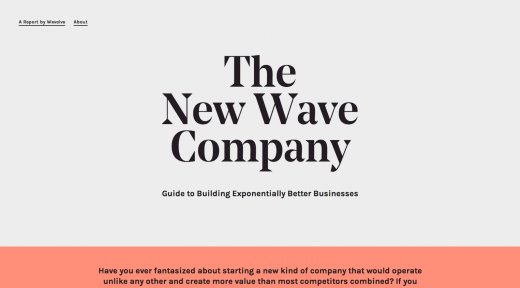 過去幾年中,網(wǎng)站設(shè)計中十分流行大標題背景圖像,上面常常有文字說明,這也是大多數(shù)訪客瀏覽網(wǎng)站時首先看到的東西。而在大標題背景圖像如斯流行的情況下,你的網(wǎng)站如何能脫穎而出呢?采取相反措施。近來泛起的一些網(wǎng)站逆勢而行,即沒有大標題背景圖像。我猜,他們這樣做不僅僅是不愿意追隨潮流,而且也在尋求進步網(wǎng)站的機能與速度。New Wave Company的網(wǎng)站就體現(xiàn)出這些特點。它使用大標題歡迎訪客,大字體集中在網(wǎng)頁中央,但標題后面沒有大背景圖片。這是一種高雅的做法,效果并不次于其他使用大背景圖像的流行網(wǎng)站設(shè)計。