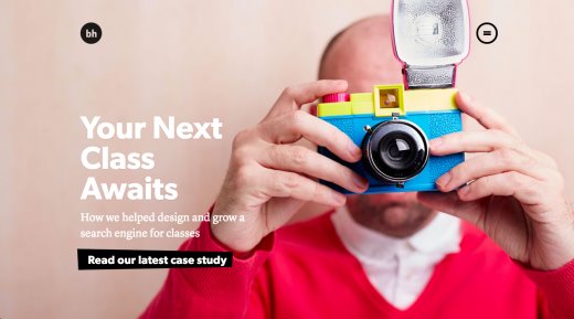 圖庫照片依然在設(shè)計中據(jù)有一席之地,但是對于大多數(shù)最新泛起的網(wǎng)站來說,圖庫照片開始采取高質(zhì)量的專業(yè)攝影照片,它們通常是唯一無二的,專為網(wǎng)站自定義拍攝的。使用自定義攝影比僅選區(qū)圖庫照片在設(shè)計方面取得了更大提高,它讓你的網(wǎng)站唯一無二,其他網(wǎng)站無法使用同樣的照片。好比,Grain and Mortar網(wǎng)站的自定義照片使用了該網(wǎng)站的大標題,這展現(xiàn)出個性化效果,由于照片上的人和辦公場景都是在Grain and Mortar真實存在的,究竟沒有假辦公空間的圖庫照片!