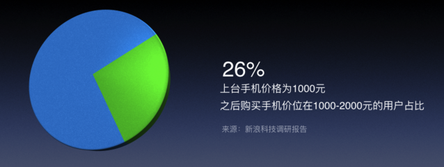 終于不增長意味著你再做一些便宜的、廉價的、粗拙的東西的市場空間進一步縮小了,而追求品質(zhì)、追求者差異化的廠商日子會好過。例如上一臺手機價格 1000 塊錢,之后購買手機的價格在 1000-2000 塊錢用戶占比大概是 26%,基本上你不用去教育市場就自己會買的這些人已經(jīng)人手一個了,這些人在換手機的多數(shù)情況下會選擇更好的東西,所以這對我們是個重大的好動靜。