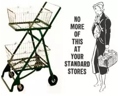 Goldman還對購物車做了幾個進級,籃子在不用的時候可以拿下來,折疊車可以相互嵌套堆疊,這樣可以節(jié)省空間。 Goldman 非常激動,這樣一來,顧客的購買能力一下子擴大了兩倍,而且整個購物體驗也更加輕松了,主婦們再也不需要提著15-20磅的籃子到處走了。 但是,與Goldman的激動比擬,顧客們對這個新穎的玩意并不感冒。