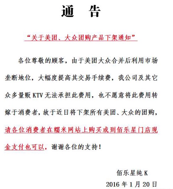 今年1月,武漢爆發(fā)KTV行業(yè)對新美大的集體抵制。