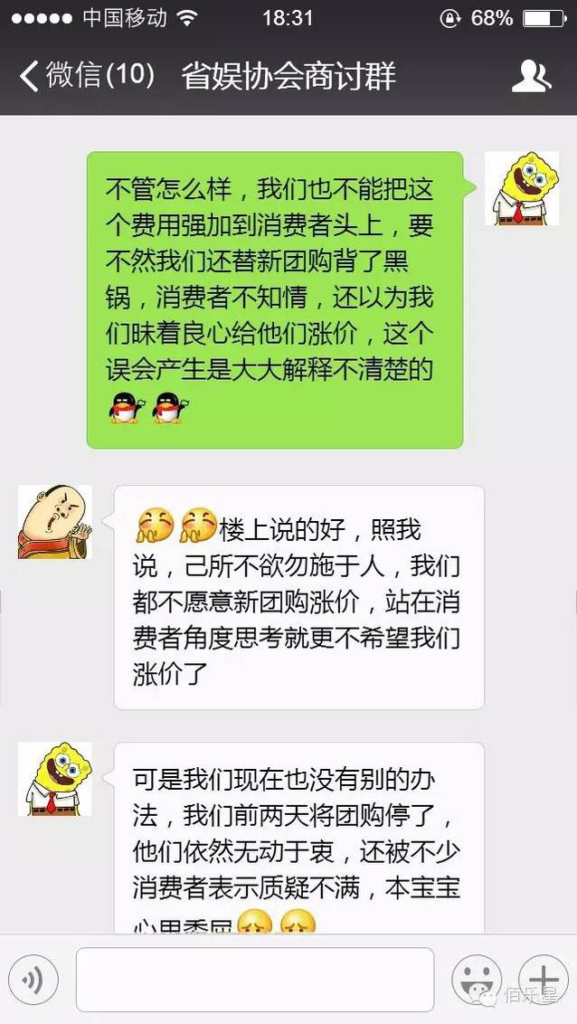 動靜是從一個名為“省娛協(xié)會商討群”的微信聊天截圖爆出來的,當事者為武漢KTV商家表示,新美大合并后,將原來的手續(xù)費由2%漲到12%,商家在討論群里集體表示,在團購的影響下,業(yè)務利潤已經(jīng)很低了,再多收取抽成點,獲得收益甚至不足以支撐基本糊口。