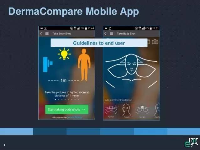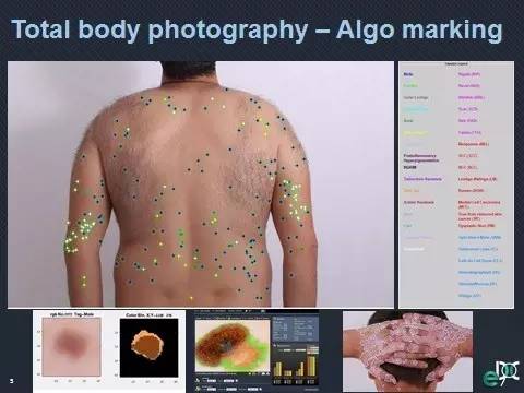 「DermaCompare 這款應(yīng)用可以讓患者通過簡(jiǎn)樸數(shù)字?jǐn)z像頭拍攝的『全身攝影(TBP)』,進(jìn)行自我皮膚檢查!筗ayne說道。用戶可以自行下載應(yīng)用和解釋說明到任何帶有數(shù)字?jǐn)z像頭的設(shè)備上。 Wayne 解釋說,一旦病人將他或她的「全身攝影」圖像上傳到他們?cè)?nbsp;DermaCompare 云服務(wù)器的私有文件,以便存儲(chǔ)和預(yù)覽,那么,DermaCompare 平臺(tái)就會(huì)(1)將圖像與病人文件中的任意歷史圖像進(jìn)行比對(duì),同時(shí)也和公司數(shù)據(jù)庫相關(guān)的圖像進(jìn)行比對(duì);(2)更新病人的文件,創(chuàng)建一個(gè)數(shù)據(jù)要點(diǎn)摘要,列出和病人皮膚圖像緊急相關(guān)的數(shù)據(jù),以及任何可疑的圖像變化的預(yù)警信息;(3)通知相關(guān)醫(yī)生獲取、審視打印好的病人的數(shù)據(jù)圖表和全身攝影圖像。它會(huì)自動(dòng)地匹配云服務(wù)器中五千萬種已知痣斑圖像以及病人的歷史圖像。這項(xiàng)技術(shù)極大地增強(qiáng)了醫(yī)生檢測(cè)玄色素瘤的精準(zhǔn)度和速度。