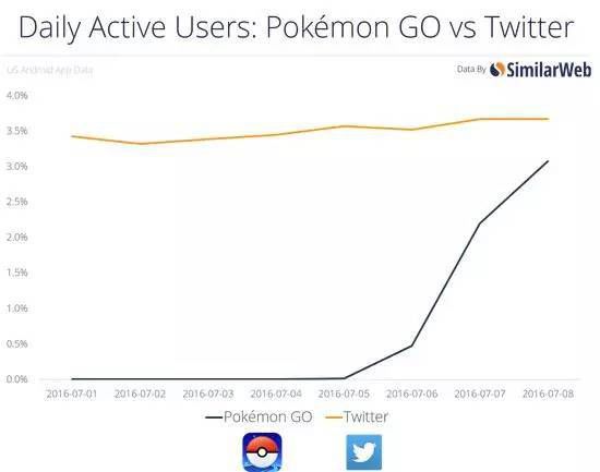 Pokémon GO 與 Twitter 的日活躍用戶(hù)量對(duì)比