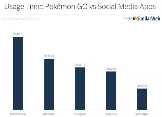 Pokémon GO 與 各大社交應(yīng)用,使用時(shí)間的對(duì)比