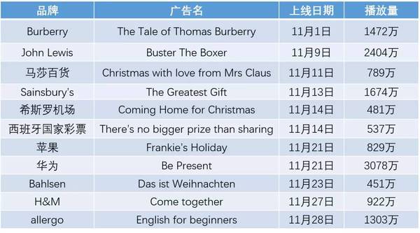 圣誕節(jié)對于企業(yè)的意義,已經不再是一個促進銷售的簡樸節(jié)日。品牌們都但愿更專心地介入進來,并嘗試著傳遞一些價值觀。反正都要做廣告,那就做個高質量的唄,它們這樣想。 其他領域的比較或許還白熱化,但廣告方面卻高下立判,并且近年來的差距還在逐漸拉大。每年,西方誕生的優(yōu)質圣誕廣告越來越多,播放量、話題性乃至實際銷售數(shù)據(jù)都表現(xiàn)不錯,這也使得更多的品牌愿意大筆花錢,即使在這個不那么好的經濟環(huán)境里。 而中國的企業(yè)和廣告人們仍在試探,固然已經開始有了一些積極的嘗試,但進程仍舊緩慢。春節(jié)就將到來,這一次又能帶來多少像去年六小齡童《猴王世家》那樣的春節(jié)廣告,這個題目短短36天之內就將有了謎底。 在此之前,我們或許可以從今年圣誕廣告的變化中汲取一些經驗。至少那些成功的廣告,會解答一些困惑,譬如如何和消費者更好地溝通。 1、廣告大片 一部名為“The Tale of Thomas Burberry”的作品同時泛起在了評分網站IMDb和豆瓣上。IMDb上的評分是8.2,豆瓣的評分為8.3,達到了目前豆瓣片子TOP250的門檻。 作品導演是阿斯弗·卡帕迪爾,他執(zhí)導的作品《艾米》獲得了今年奧斯卡最佳紀錄長片;編劇馬特·查曼憑借《間諜之橋》提名今年奧斯卡最佳原創(chuàng)劇本;男主角多姆納爾·格里森參演過《荒田獵人》和《星球大戰(zhàn):原力覺醒》;執(zhí)掌鏡頭的是憑借《藝伎回憶錄》獲得奧斯卡最佳攝影的澳大利亞人迪昂·畢比。 這看起來就是一部片子。除非留意到它的時長——216秒,這時你才會發(fā)現(xiàn)它好像有些不一樣。 這個短視頻是Burberry為圣誕節(jié)推出的節(jié)日廣告。這個160年歷史的品牌,但愿在節(jié)日來臨的時候給消費者講述一個故事,關于創(chuàng)始人Thomas Burberry發(fā)明防水面料嘎巴甸的過程。 制作團隊將拍攝地點選擇了英國牛津郡的Shirburn城堡,并在那里搭建出了一條一戰(zhàn)時期的戰(zhàn)壕,設計工作室等場景的美術設計則參考了檔案史料。全片的本錢據(jù)稱高達1000萬英鎊,均勻每秒本錢為39.5萬元人民幣。 11月1日上線的這則廣告拉開了今年圣誕廣告大戰(zhàn)的帷幕。一天時間內YouTube上獲得的觀看數(shù)達到了178萬,而現(xiàn)在這個數(shù)字飆升至1472萬。 YouTube下點贊最高的一條評論寫著:“Holy shit,我但愿這是一部真的片子。”在豆瓣上,一位用戶留言說:“我tm認為是片子預報。”好像,只有粗話才能夠表達出內心的狀態(tài)。 圣誕廣告越來越“大片化”,不只是Burberry在這么干。 H&M在11月27日推出了名為“Come Together”的作品。導演韋斯·安德森的代表作是《布達佩斯大飯店》,在去年奧斯卡中共計提名10個獎項。 而今年,他將最喜愛的場景——行駛在大雪中的火車——引入到廣告當中。講述了在一列因大雪而延誤的火車上,可能將錯過圣誕狂歡的人們在20分鐘內如何布置圣誕餐會的故事。對了,男主角艾德里安·布洛迪同樣是一位片子人,在2003年憑借《鋼琴師》斬獲最佳男主角。 退出中國市場的馬莎百貨,并沒有在圣誕廣告的制作上勒緊腰帶。它的圣誕廣告講述了圣誕白叟的妻子騎著重型機車,搭著直升機去匡助一個小男孩實現(xiàn)愿望的故事。濃厚的女權主義色彩成功羈縻到了一些女性觀眾,而女主角珍妮·麥克蒂爾也曾參演過多部片子。 圣誕,已經成了品牌們非常珍視的廣告檔期,而非簡樸的廣告時段。企業(yè)的經營者們逐漸達成了一種共鳴:不僅要提供廣告,更重要的是提供精心拍攝的優(yōu)質廣告。 “該片子讓我們對Thomas Burberry長久而卓越、交織著20世紀歷史跌宕放誕放誕起伏的一生有了一定的了解。” Burberry首席創(chuàng)意總監(jiān)兼首席執(zhí)行官Christopher Bailey用“片子”一詞注解了自己對圣誕廣告的想法主意。 2、John Lewis的申明鵲起 今年的圣誕廣告大戰(zhàn)始于Burberry廣告的發(fā)布。之后的一個月,各大品牌紛紛推出了自己的廣告,讓這個檔期顯得十分擁擠。 固然,廣告主分布在各個國家、各個行業(yè),但它們難得地形成了共鳴:用故事來吸惹人們的留意力。事實也證實,相較于不加控制的品牌露出和促銷信息,那些娓娓道來的品牌收成了更大的影響。 今年發(fā)布圣誕廣告的部門品牌及播放量 當然,圣誕廣告從來都不是新鮮的事物,例如今年已經是蘋果圣誕廣告推出的第33年。但作為廣告檔期存在的圣誕歷史并沒有那么長,在這個過程中,英國百貨商店John Lewis扮演了樞紐的角色。 它在2007年推出了首支圣誕廣告,隨后形成每年定時發(fā)布廣告的習慣。2011年的圣誕廣告“The long wait(等待)”成為了奠定此后風格的作品,廣告講述了一個焦急等待節(jié)日到來的小孩,在圣誕的早晨將包裝精致的禮物送給父母的故事,終極在YouTube上獲得了793萬的播放量;2014年的“Monty the Penguin(企鵝蒙蒂)”是另一個代表作,播放量達到2700萬。 在John Lewis的圣誕廣告中,除了故事,背景音樂是它的另一個特色。固然幾乎都由小眾歌手演唱,但大多數(shù)在廣告中泛起的歌曲,都能在隨后的歌曲排行榜中獲得不錯的位置。2012年的“The Power of Love”和2013年的“Somewhere Only We Know”甚至沖到了英國流行音樂排行榜的榜首。 除了這些周邊的影響,John Lewis對廣告帶動銷售的效果也感覺滿足。官方表示過去四年的圣誕廣告流動均勻晉升了16%的節(jié)