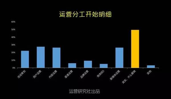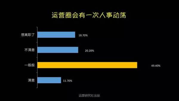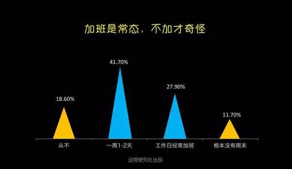 1、運營從業(yè)者的男女比例? 運營從業(yè)者的在性別占比上,15年仍是男生略勝女生,今年則是被完勝10個百分點。無論是在哪家公司做運營,都能夠顯著的感覺的陰盛陽衰。不知道大家是否跟我一樣,尋思著男同胞們都上哪工作了。 不外話說歸來,嘴上在嘀咕,作為男生心里仍是美著呢,究竟身邊美女圍著轉,加班搬磚也帶勁。 2、運營從業(yè)者的春秋組成? 在16年的運營從業(yè)者中有64.2%是90后,工作十年以上的老司機偏少。項目落地靠90后,掌舵還得靠85前,真正享有運營決議計劃權的是30歲以上的運營白叟。他們在互聯(lián)網(wǎng)剛起步階段就開始在運營領域摸爬滾打,固然人數(shù)只占了6.6%卻把握了80%的運營資源。 3、運營從業(yè)者的工作方向? 運營是個框什么都能夠往里裝,每次朋友聚會被問到在做什么的時候,你是不是也會緊張,然后腦子里快速閃過最近做的事情,試圖給自己做工作下個詳細的定義,可終極仍是有49.5%的運營無法改變“實在自己什么都做”的真相。 不外從16年運營人生存現(xiàn)狀調查的結果中我看到了一個好的趨勢:運營分工開始明細。內容和用戶運營的相關從業(yè)者比例晉升到了26%,新媒體運營的比例在下降,越來越多的企業(yè)開始意識到對產(chǎn)品本身運營的價值高過在新媒體渠道的盲目跟進。 4、運營從業(yè)者的工作年限分布? 據(jù)某著名招聘網(wǎng)站數(shù)據(jù)顯示,互聯(lián)網(wǎng)的整體從業(yè)者中工作經(jīng)驗在3年以下的為37.46%,而單從運營崗位分析,0-3歲的運營卻占到了91.5%,比擬于技術、產(chǎn)品、設計,運營作為互聯(lián)網(wǎng)的新興崗位還有很長的路要走。 另外,今年1-3歲運營的占比超過了0-1歲運營,看來仍是有蠻多人選擇在運營這條路上堅持的。 5、運營從業(yè)者的薪資收入? 運營也算是拼資歷了,薪資分布和從業(yè)年限的分布在整體上一致。受工作年限的影響,79.8%的人工資不超過10K,只有少部門運營突破經(jīng)驗限制拿到了10K以上。 今年互聯(lián)網(wǎng)行業(yè)整體均勻薪資晉升了,但是1-3年運營從業(yè)者的薪資水平反倒泛起了下降,相信不少人又該(被)拖后腿了。 6、你運營的產(chǎn)品用戶規(guī)模? 受資本寒冬的影響,今年未上線的產(chǎn)品占比從去年的27.6%下降到了17.8%,用戶規(guī)模在10萬-100萬的產(chǎn)品比例晉升了2個百分點。 對于互聯(lián)網(wǎng)創(chuàng)業(yè)來說10萬用戶規(guī)模是條坎,還有46.1%的產(chǎn)品在努力沖破這條生命線,往前推進意味著融資加速,整體運營節(jié)奏也能夠上正軌。 7、你需要加班嘛? 超過81.4%的運營需要加班,更糟糕的是有11.7%的從業(yè)者根本就沒有周末。拼一點的創(chuàng)業(yè)公司正常的作息時間是“10-10-6”,也就是每周需要工作6天,周末碰到產(chǎn)品或者流動上線基本上就是繼承加班了。 即使不在創(chuàng)業(yè)公司,有一些社區(qū)的運營,周末除了需要更新內容和首頁物料,碰到熱門事件還得出內容做專題,工作節(jié)奏完全遇上了戰(zhàn)地記者。對嚴苛要求自己的運營來說,糊口即工作,工作即糊口,單身只身汪恨不得把家搬公司了。18.6%表示從不加班的運營,不知道你們公司還招人嗎? 8、你在工作中最缺什么? 跟運營從業(yè)者中大部門是90后有關,65.5%的運營都是工作狂,在他們眼里個人工作成就感比什么都重要。 另外一個比較讓長輩們擔心的現(xiàn)象是:運營從業(yè)者把找另一半的優(yōu)先級放在掙錢、個人時間、旅游之后了。 9、你對現(xiàn)在的運營工作滿足嘛? 預計明年春季在運營圈會有一波大換血和動蕩,超過88.3的運營表示對現(xiàn)在的工作無感,其中18.7%明確提出想離職。 無法學到更多東西、對新增不滿足、企業(yè)發(fā)展遠景不佳,是互聯(lián)網(wǎng)運營人選擇跳槽的主要原因,各位老板們是時候在年底的時候給你想留著的人才加薪發(fā)年終獎啦。 最后是今年新增的一項關于學習的調查,主要是出于私心想看看現(xiàn)在有多少人缺乏系統(tǒng)學習的機會。讓人值得興奮是不缺學習機會的運營占比想象中高出了3個百分點,但是仍舊有超過90%的運營缺乏學習機會,比擬于零散的微課有75.5%的運營開始熱衷于花更多的時間去系統(tǒng)的學習運營。 附上五條運營對自己學習現(xiàn)狀的吐槽: 1)培訓少領導太忙沒時間指教 2)像我們這種二本不出名學校畢業(yè)的應屆生,第一年真的好難啊。但愿有針對我們的課程。 3)我剛剛轉到廣告產(chǎn)品運營,之前也不是做這塊的,有時不知道要往哪方面想,做些什么。最頭疼的是,想請教個人也沒有,由于目前整個部分只有我一個運營。之前還有一個人做這塊內容,每次想跟他學習下,他都會說你自己想唄。 4)仍是沒人帶啊沒人帶,自己做了運營方案但又沒能很好地執(zhí)行,學的知識點都是零散的不系統(tǒng)。 5)運營工作職員很難找到一個系統(tǒng)的學習尺度,都是在不斷試探中總結經(jīng)驗,剛入行的小白感覺要學的太多,不知從何開始。 90后的李叫獸只有一個,但苦逼的運營卻有良多!我們要靜守,一起抱團渡過這段一臉蒙逼的成長。 |
