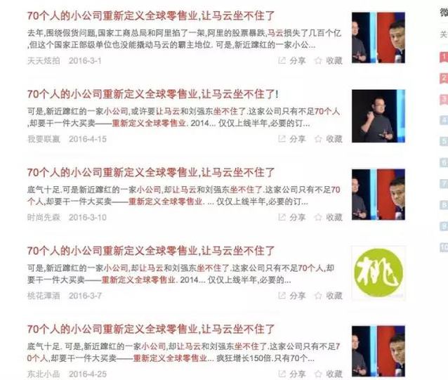 199就能買到 Burberry,200塊就能買到正品耐克……賣個高仿賣出這種驚天地泣鬼神的逼格,你真的合適嗎。 過去那些做高仿的,一般只敢寫:淘寶爆款,月銷千件…… 但畢勝和必要商城,不愧都是B字輩的,用一個C2M的高大上概念,把整個高仿微商都抬高了一個檔次! 看完必要商城的模式先容,我才明白:原來必要商城的貨源都是來自品牌老板小姨家的二大爺開的工廠,對方既不怕傷害品牌利益丟訂單,又不怕你訂單少還個性化需求多單拉出產(chǎn)線要虧本……反正就是:好貨低價專門只賣給你,又正品來又便宜……劉強東你要好好學(xué)習(xí)一下,京東一直干不外淘寶,原來就是沒有做C2M模式! 看脫稿件,覺得整個靈魂都得到了升華的倪叔,深深的覺得自己配不上這么牛逼的客戶,于是我問公關(guān)哥哥:您是否找錯人啦?這像這種玄幻小說,不是應(yīng)該投放出發(fā)點中文網(wǎng)嗎?來找我們這些寫非虛構(gòu)的真的好嗎? 公關(guān)哥哥沒想到我會拒絕,愣了愣就罵出一句:哼!不識提拔,多少大號都投放了我們的文章,你一個小號來挑什么刺? 大號?。!我嚇了一跳,豈非是作為小號的我太low啦,已經(jīng)跟不上時代的步伐了嘛?我急忙打開了微信搜索,看到如下情況: