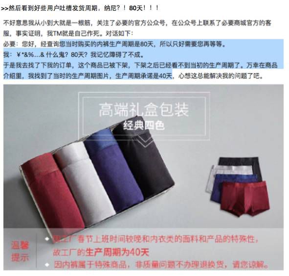 所謂:看起來很美的C2M,實質(zhì)在中國寸步難行 大廠有過往包袱不愿意陪著玩 小廠有意愿但又沒有實力玩 貨差人就少,訂單量小 工廠不愿意開出產(chǎn)線就積存訂單 良多產(chǎn)品逾期不能發(fā)貨 知乎用戶上必要買一條內(nèi)褲,出產(chǎn)周期是:80天 如斯體驗,如何能不挨罵?如何能有回頭客?