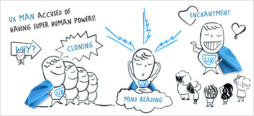 好比,聞名原型圖工具 Axure 首頁掛著這樣一幅用戶體驗職員和產品經(jīng)理工作自我吐槽的簡筆畫。很好地引起用戶的共識,增強用戶對產品的好感。