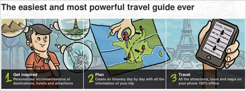 Tourist Eye 用三幅連環(huán)畫解釋自己的產品功能。