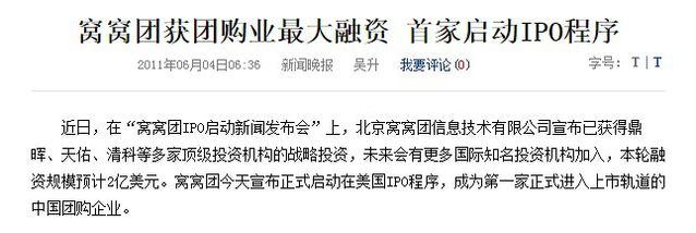 文\X教授(微信公家號(hào):X_Man_Investment) 在大眾創(chuàng)業(yè)的背景下,初創(chuàng)企業(yè)A輪百萬(wàn)、B輪C輪數(shù)千萬(wàn)美金的融資新聞,已經(jīng)不能在科技媒體上吸引眼球與流量了。每隔幾天,就會(huì)有此前默默無(wú)聞的公司公布進(jìn)行金額聞所未聞的融資。有趣的是創(chuàng)投界的神話(huà),往往會(huì)自我祛魅和揭穿。 虛假融資成風(fēng)有強(qiáng)烈的內(nèi)在邏輯驅(qū)動(dòng)。游戲介入方甚至能得到皆大歡喜的局面。對(duì)創(chuàng)業(yè)者而言,浮夸的數(shù)額吸引眼球,能夠成為免費(fèi)的公關(guān)流動(dòng),利便拉人入伙、市場(chǎng)拓展乃至遏制競(jìng)爭(zhēng)對(duì)手。 對(duì)投資者而言,包裝出來(lái)的“欣欣茂發(fā)”態(tài)勢(shì),利便擊鼓傳花的資本游戲進(jìn)行下去。易凱資本創(chuàng)始人兼首席執(zhí)行官王冉,在一次演講中就說(shuō)過(guò):“一家公司融了3000萬(wàn)美元,然后新聞報(bào)出來(lái)就是8000萬(wàn)美元,融了1億美元報(bào)出來(lái)可能是3億美元。那既然你這么做了,他的競(jìng)爭(zhēng)對(duì)手看到了,通常競(jìng)爭(zhēng)對(duì)手也會(huì)采用同樣的方式。由于做乘法并不難,乘以2、乘以3基本就可以了,然后圈里知道都會(huì)這么做,又會(huì)除歸來(lái),所以除法也并不難。” 未上市企業(yè)因不需要向公家表露企業(yè)信息,還能繼承講故事虛報(bào)融資;而一旦謀劃上市,遞交包含招股書(shū)在內(nèi)的諸多文件,過(guò)去所有的融資真實(shí)情況就會(huì)暴露,尤以美股市場(chǎng)為甚。 只需要簡(jiǎn)樸的英文能力,詳閱招股書(shū),便能發(fā)現(xiàn)此間的蹊蹺。進(jìn)入筆者視野的五家公司,固然間隔上市之初過(guò)去了許久,且不乏洗白成功登堂入室者,但恰是作惡者的上行下效,現(xiàn)在虛報(bào)融資額之風(fēng)才越刮越烈,這也是“算舊賬”的意義所在。 有上市潛力的優(yōu)質(zhì)創(chuàng)業(yè)者介入融資數(shù)額造假游戲,最為愚蠢。由于假如公司做的好,很快就會(huì)下一輪融資,而一輪要比一輪融資規(guī)模大,因此假話(huà)將一個(gè)接著一個(gè),最后進(jìn)行證券登記時(shí),假話(huà)難圓。 出來(lái)混早晚是要還的,筆者收拾整頓的五家互聯(lián)網(wǎng)企業(yè):狂風(fēng)科技、智聯(lián)招聘、唯品會(huì)、歡聚時(shí)代、窩窩團(tuán)。有的正在遭遇訴訟,有的在被徐徐遺忘,有的雖有可稱(chēng)為“傳奇”的成功,但未來(lái)將如A股走勢(shì)般兇險(xiǎn)。 第一名: 窩窩團(tuán)融資額翻4倍報(bào)道融資額:2億美元 真實(shí)融資額:5500萬(wàn)美元 2011年5月,窩窩團(tuán)高調(diào)公布首輪融資將達(dá)2億美元,是當(dāng)年團(tuán)購(gòu)業(yè)內(nèi)單筆融資的最大規(guī)模,融資方為鼎暉、天助、清科等。 以下為媒體報(bào)道截圖: