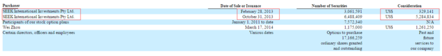 但招股書(shū)顯示在麥格理拋售后,大股東Seek并未跟投1.05億美元,只注資了約561萬(wàn)美元,只是1.05億美元數(shù)據(jù)的零頭。實(shí)際情況是文字游戲:智聯(lián)自身出資1.05億向麥格理回購(gòu)了股份并注銷(xiāo),但卻被說(shuō)成大股東看好而增加持股比例。因?yàn)榭偣煞菹陆担蠊蓶|Seek的持股比例天然上升,真正注入的現(xiàn)金僅561萬(wàn)美元。 以下為招股書(shū)截圖: