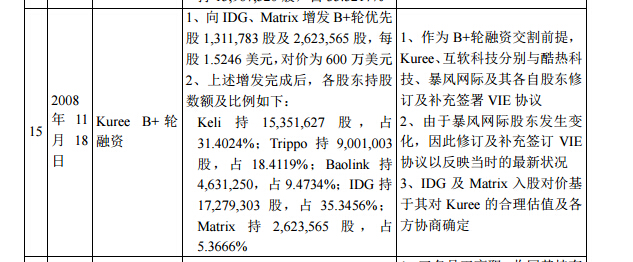 但狂風(fēng)科技招股書(shū)顯示,在2008年11月18日,向IDG、Matrix增發(fā)B+輪優(yōu)先股1,311,783股及2,623,565股,每股1.5246美元,對(duì)價(jià)為600萬(wàn)美元,不足報(bào)道中1500萬(wàn)融資額的一半。