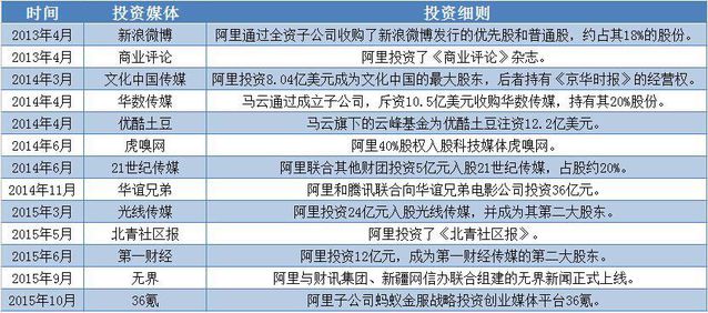 投資觸角不斷延伸,阿里瘋狂擴(kuò)張傳媒版圖