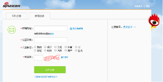 如下圖新浪網(wǎng),注冊(cè)時(shí)需勾選自己的愛(ài)好標(biāo)簽。