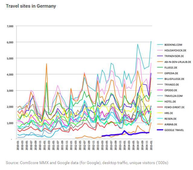 歐盟指責(zé)谷歌人工干涉干與了搜索結(jié)果,不外這里要提醒大家的是,DT君經(jīng)由調(diào)查發(fā)現(xiàn),谷歌受到的指控并不是類似百度這樣的販賣廣告位等,而是將自己的一些產(chǎn)品排在了更優(yōu)先的位置。這些被指控的產(chǎn)品,也都不是最核心的產(chǎn)品,好比Google Travel、Google Shopping等。 谷歌在遭到指控后作出回應(yīng),不無委屈地曬出這些產(chǎn)品在一些歐盟國家可憐的市場份額。谷歌表示,旅行搜索是一個(gè)競爭激烈的垂直市場,而自己的據(jù)有率實(shí)在少得可憐。