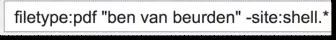 高級(jí)搜索指令filetype返回的是指定文件類型。鍵入這個(gè)搜索指令,Google會(huì)檢索出有關(guān)殼牌CEO的所有PDF文件,-site:shell 會(huì)命令Google剔除所有來自殼牌公司網(wǎng)站的文件。 這個(gè)搜索指令可以讓你檢索到除了對(duì)象所在機(jī)構(gòu)外別的文件。這些結(jié)果可以讓你更加全面地看到你檢索對(duì)象的反對(duì)者、競(jìng)爭(zhēng)對(duì)手是如何評(píng)價(jià)他們的。 注釋:inurl:pdf “ben van beurden” –site:shell.* 指令包含一個(gè)高級(jí)搜索語(yǔ)法:inurl,即in+url,它的作用是限定在url中搜索(URL,全稱Uniform Resource Locator,中文譯為“同一資源定位器”,就是地址欄里的內(nèi)容)。 3.搜索官方數(shù)據(jù)庫(kù)