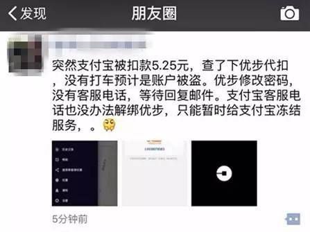 這條朋友圈的大概內(nèi)容就是,他的優(yōu)步賬號被盜刷了,而且,除了凍結(jié)支付寶,一點(diǎn)辦法也沒有。。。