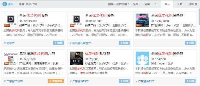 在 QQ 上,也有大量的優(yōu)步代叫服務(wù)群。。。