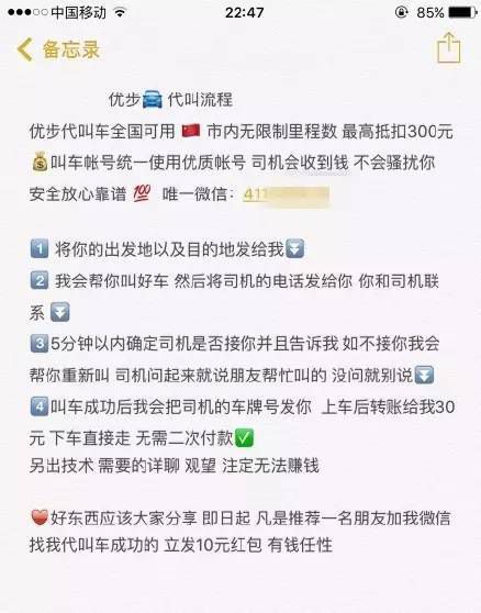 好東西應(yīng)該大家分享,即日起,凡是推薦一名朋友加我微信找我代叫車成功的,立發(fā) 10 元紅包,有錢率性。