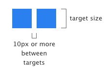 另外一個需要考慮的是就是可觸摸控件指尖的間隔。假如兩個按鈕比較靠近,那么用戶在移動端上就很輕易泛起誤觸的情況了。假如想要解決這個題目,就需要根據(jù)實際情況重新調(diào)整尺寸和按鈕之間的間隔,以適應用戶手指交互的需求。下面是推薦的尺寸設定。