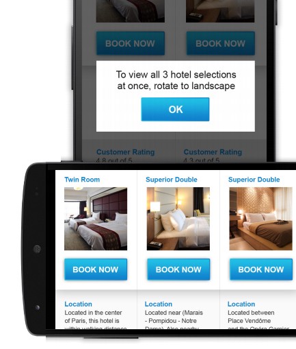 不同的屏幕方向下,用戶的瀏覽體驗會完全不同的。用戶慣于在統(tǒng)一屏幕方向下完玉成部的操縱,所以提醒他們切換方向可以晉升網(wǎng)站瀏覽的用戶體驗。所以,當你的網(wǎng)站偏向展示性,并且使用橫屏時瀏覽體驗更佳的話,不妨使用行為召喚設計來提示用戶。