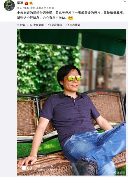 雷軍:墨鏡銷(xiāo)量暴升 是因?yàn)槲业囊粡垺办n照” |
