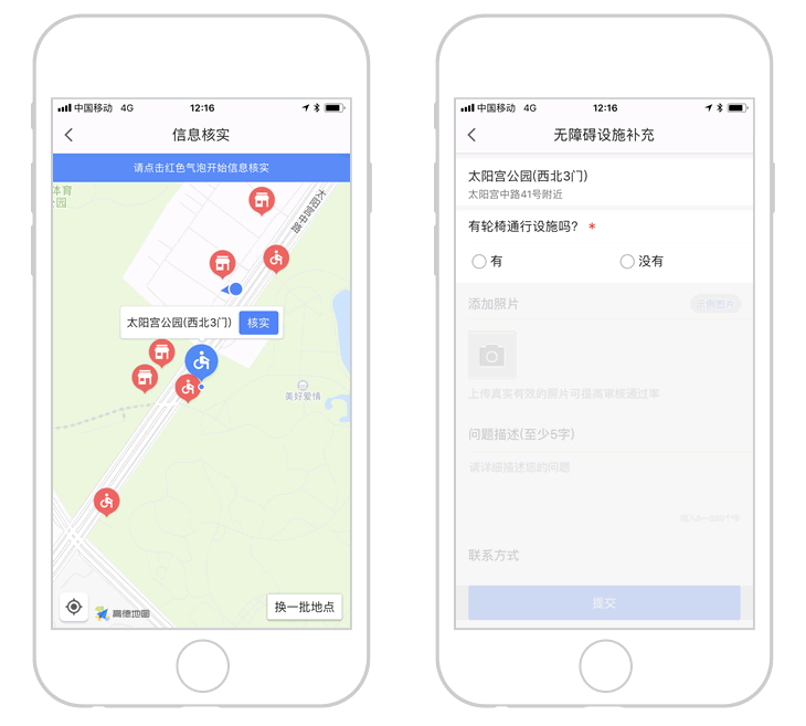 12月15日,高德地圖宣告無障礙地圖的開發(fā)更進一步,現在已上線無障礙設備上報功用。