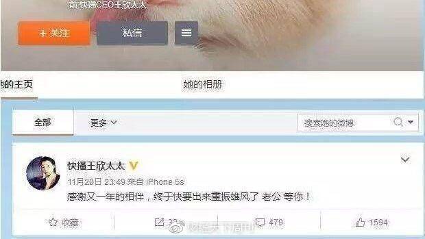 服刑兩年的快播董事長(zhǎng)王欣就快出獄了。如果不考慮弛刑,3年6個(gè)月刑期將在2018年2月完畢。2017年11月20日,他的妻子曾發(fā)微博稱:“感謝又一年的相伴,總算快要出來(lái)重振雄風(fēng)了老公等你!”11月24日,這條微博現(xiàn)已刪去。