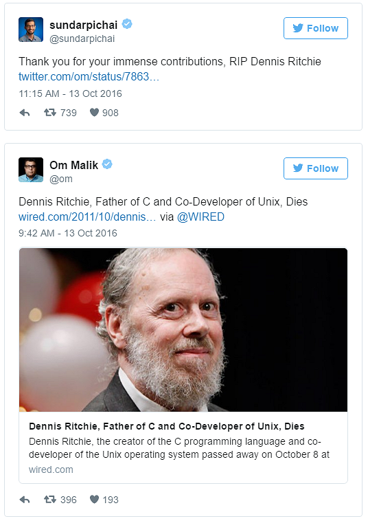 Dennis Ritchie 對(duì)于現(xiàn)代軟件技術(shù)的貢獻(xiàn)是毋庸置疑的,身為 C 語言同時(shí)也是 UNIX 之父,對(duì)于現(xiàn)代軟件以及系統(tǒng)的影響當(dāng)然非常大。