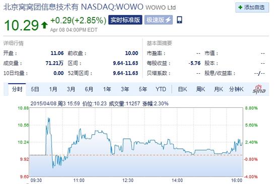 新浪科技訊 北京時(shí)間4月9日凌晨動(dòng)靜,窩窩團(tuán)在美國納斯達(dá)克全球市場成功掛牌交易,股票代碼為WOWO,發(fā)行價(jià)為每股ADS 10美元,每股ADS
