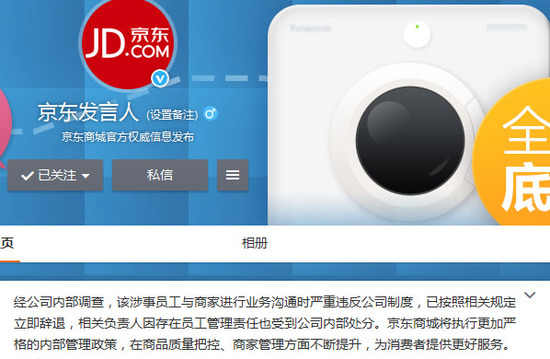 4月3日動靜,本日京東在官方微博發(fā)布動靜稱,針對前的報道的京東員工鋪排商戶shua單做出了內(nèi)部處理結(jié)果。京東稱,經(jīng)公司內(nèi)部調(diào)查,該涉事員工