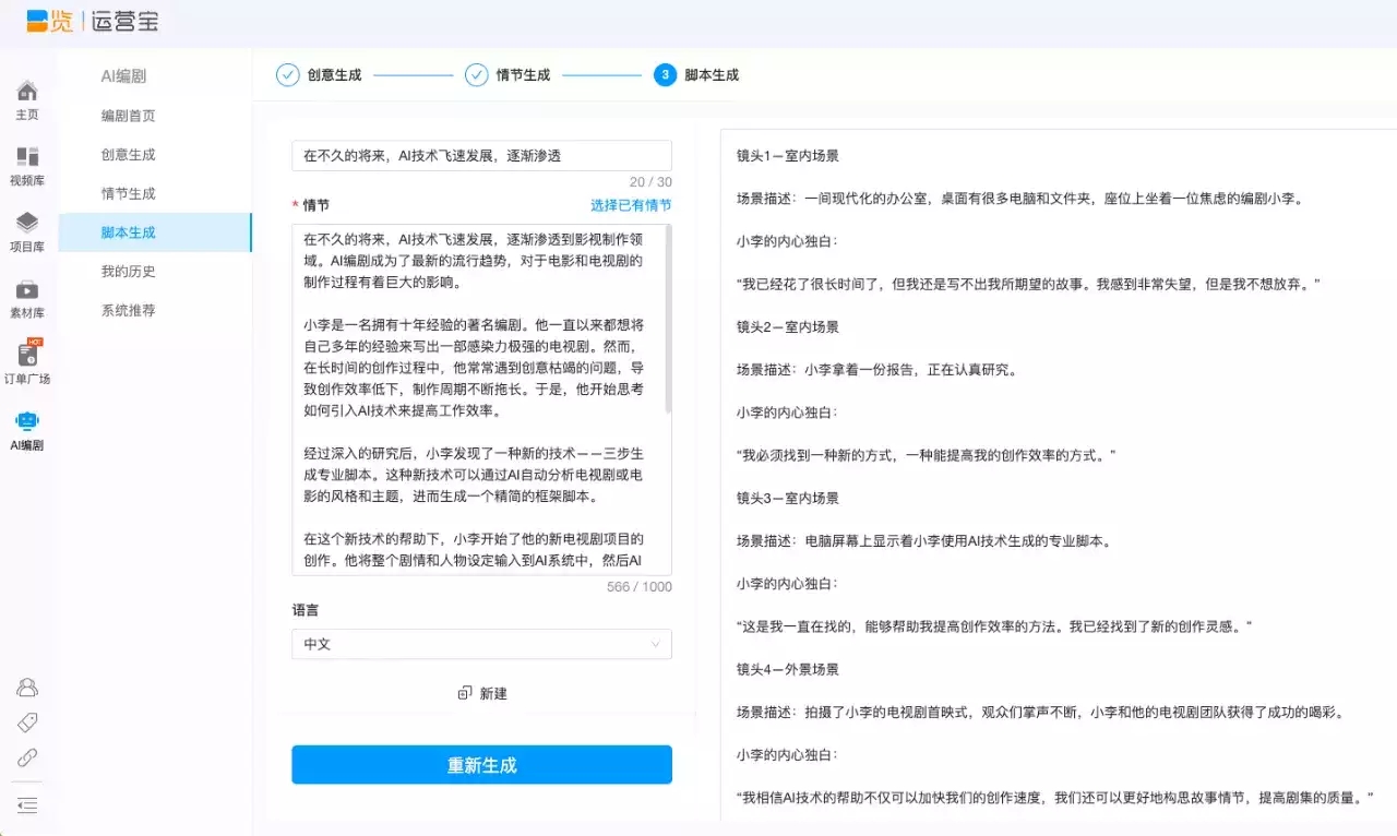 3 月 27 日音訊,一站式視頻處理計(jì)劃提供商:一覽科技今日推出業(yè)界首個(gè)基于 GPT 大模型的“文本 + 圖片 + 虛擬人” 視頻 AIGC 全域工作流。首期上線產(chǎn)品為集創(chuàng)意、情節(jié)、腳本自動生成于一體的“AI 編劇”,