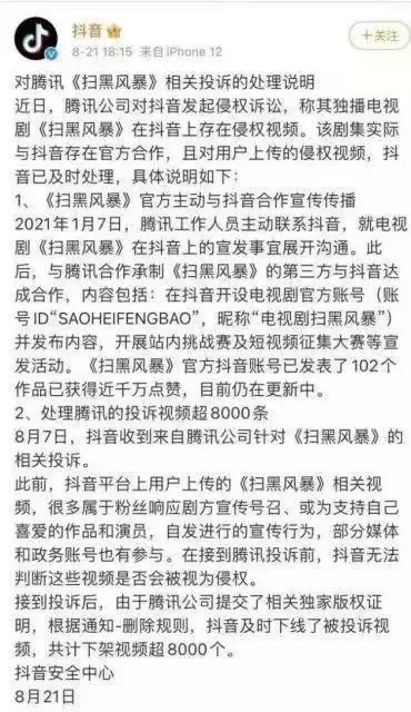近騰訊與抖音就長、短視頻版權(quán)問題“握手言歡”,雙方宣布“將盤繞長短視頻聯(lián)動推行、短視頻衍生創(chuàng)作展開協(xié)作!边@一舉措,惹起了社會的普遍關(guān)注與討論。被看做是“長短視頻之爭的一個(gè)“新拐點(diǎn)”。 很多網(wǎng)友慨嘆“早該如此”,