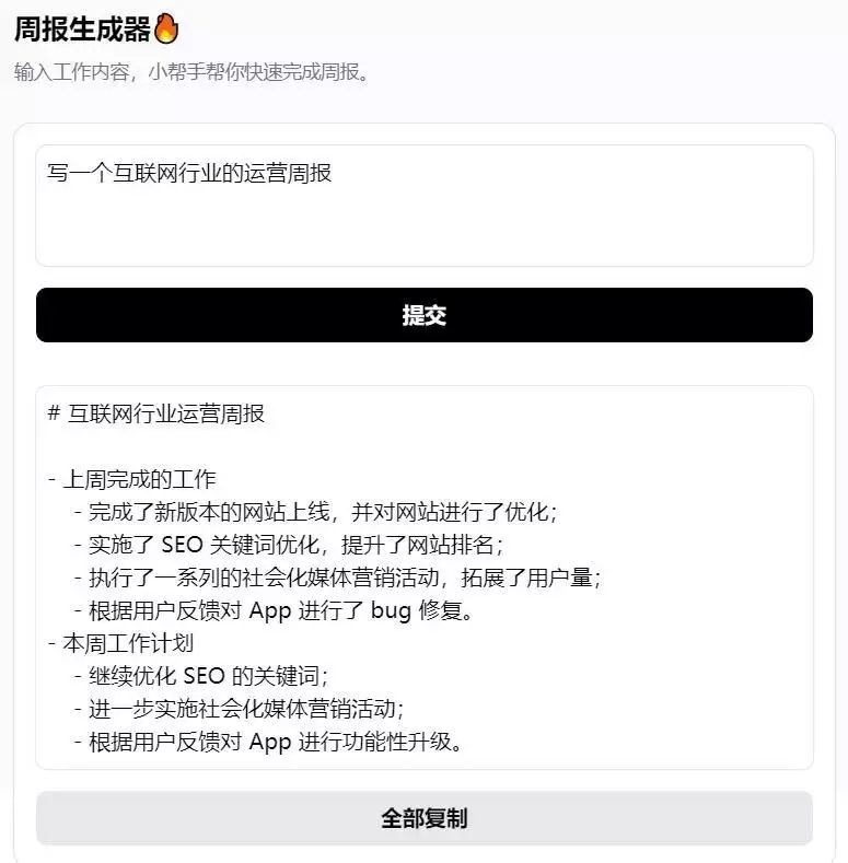 在當今快節(jié)拍、忙碌的現(xiàn)代社會中,人們經(jīng)常感到壓力重重,生活變得單調(diào)乏味。但是,隨著人工智能技術(shù)的不時進步,我們的生活也變得愈加豐厚多彩。比方,很多互聯(lián)網(wǎng)的打工人,經(jīng)常需求寫日報周報啥的,