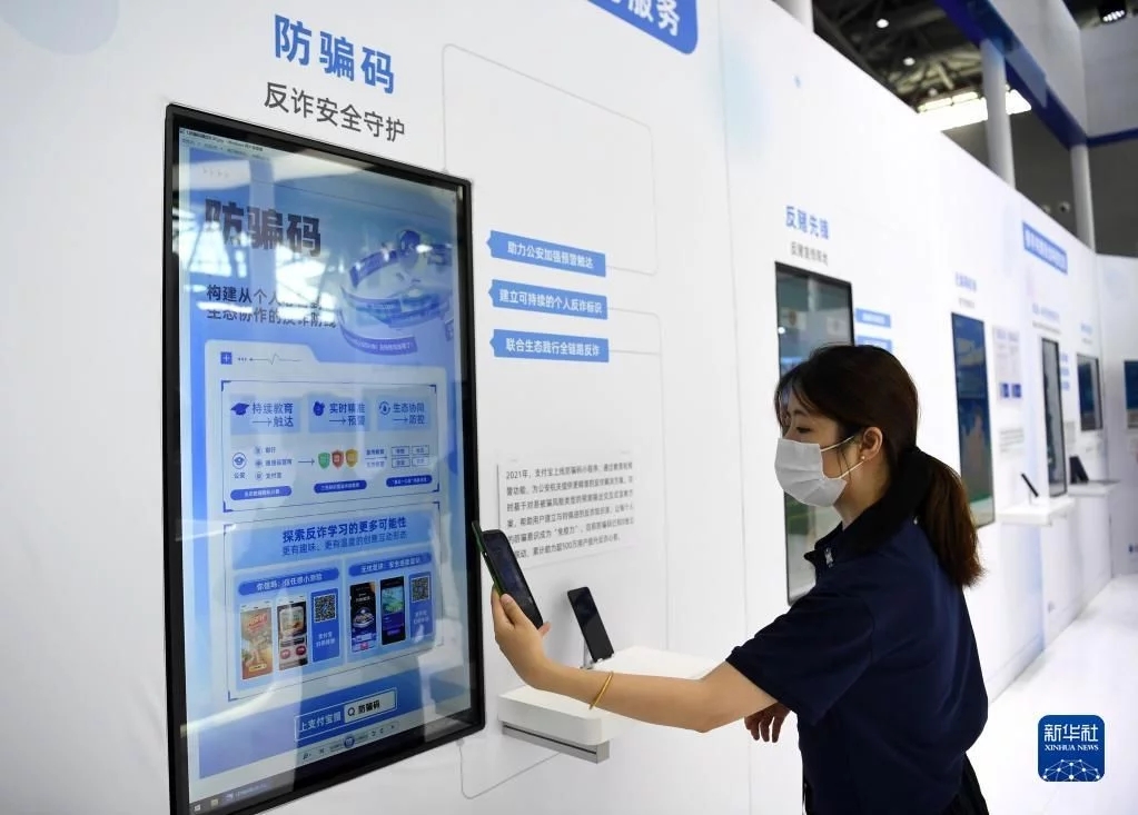 9月4日,一家參展企業(yè)代表在演示使用防騙碼! ‘斎,2022年國家網(wǎng)絡(luò)安全宣傳周網(wǎng)絡(luò)安全飽覽會在安徽省合肥市舉辦。