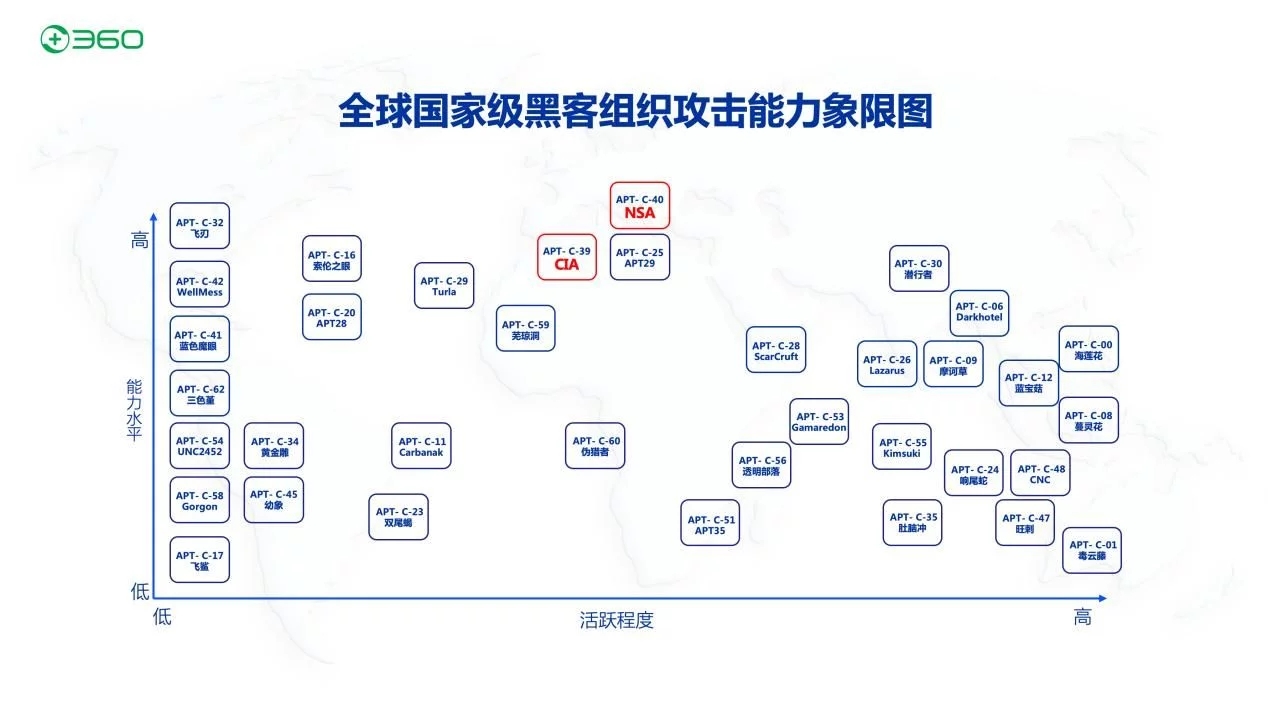9月8日電 9月8日,三六零(601360.SH,下稱“360”)公司發(fā)布全球首個(gè)國家級黑客安排進(jìn)犯才能象限圖,從才能水平緩活躍程度兩個(gè)維度,