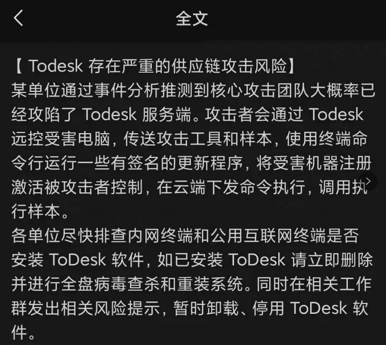 就在前幾天,大名鼎鼎的長途操控軟件To Desk被爆存在安全縫隙,更有知情人士To Desk總服務(wù)器已被拿下,進(jìn)犯者會經(jīng)過To Desk遠(yuǎn)控受害者電腦傳送進(jìn)犯樣本,