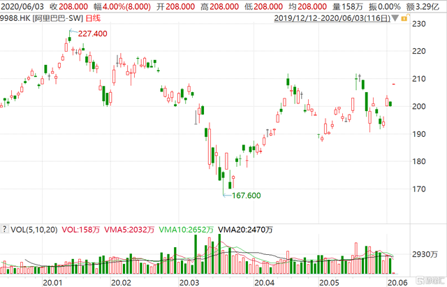618購(gòu)物節(jié)閃亮開(kāi)局,阿里巴巴今早跳空高開(kāi)4%報(bào)208港元,盤(pán)前成交3.29億港元,最新總市值44641億港元。隔夜美股阿里巴巴收漲3.76%報(bào)214.33美元,