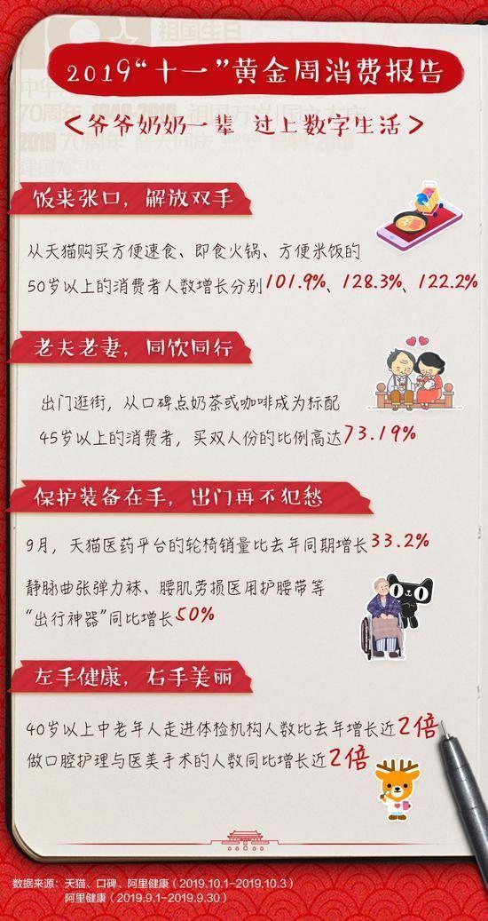 10 月 6 日音訊,阿里發(fā)布《阿里巴巴 2019「十一」黃金周消費數(shù)據(jù)陳述》顯現(xiàn),陳述顯現(xiàn),本年十一黃金周,線上消費呈現(xiàn)精致化、高效化、智能化趨勢,