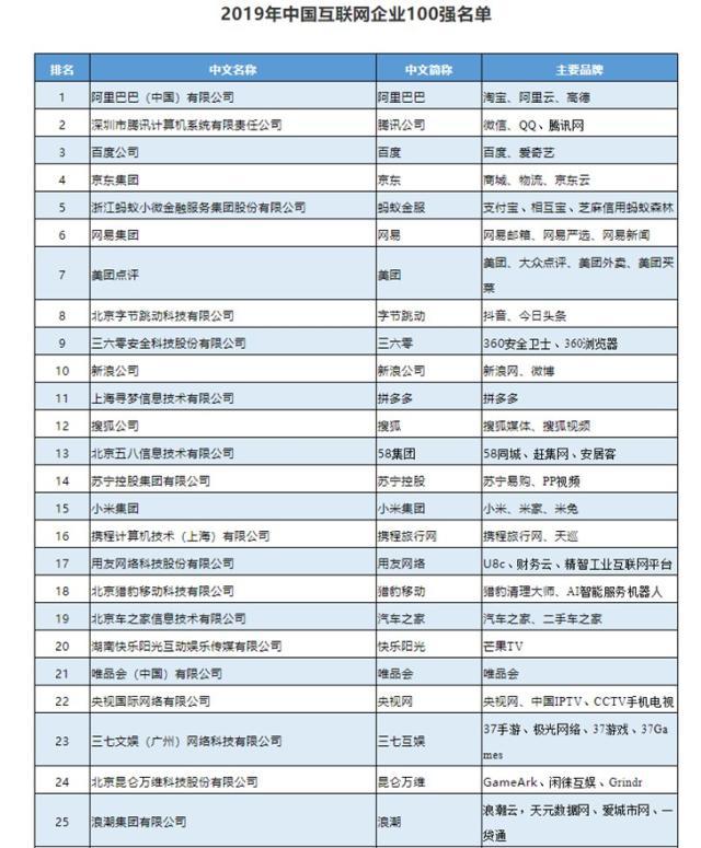 8月14日音訊 工業(yè)和信息化部信息中心發(fā)布了2019年我國互聯(lián)網(wǎng)企業(yè)100強(qiáng)榜單,阿里巴巴(我國)有限公司、深圳市騰訊計算機(jī)體系有限責(zé)任公司、百度公司、