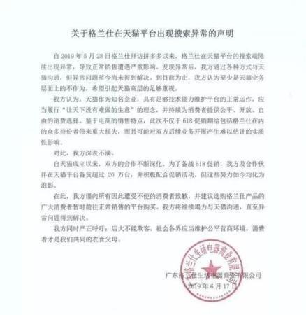 面臨格蘭仕在輿論場(chǎng)的步步升級(jí),天貓卻顯得沉默。舞臺(tái)上,儼然格蘭仕的“獨(dú)角戲”。一個(gè)是家電巨子,一個(gè)是電商巨子,雙方究竟發(fā)生了什么抵觸?